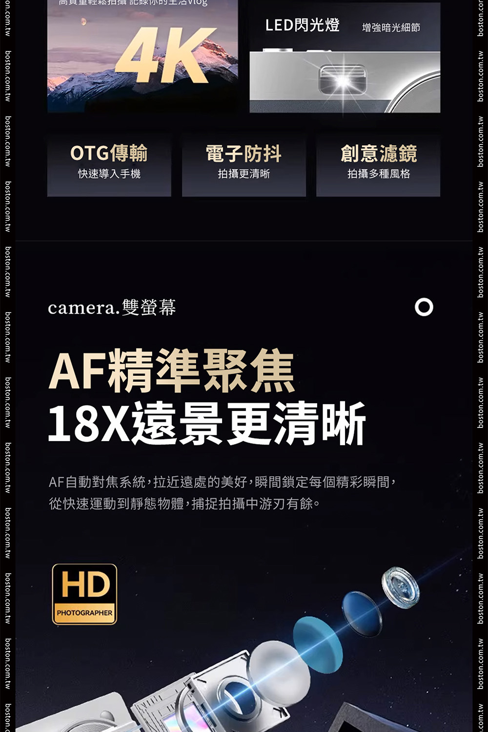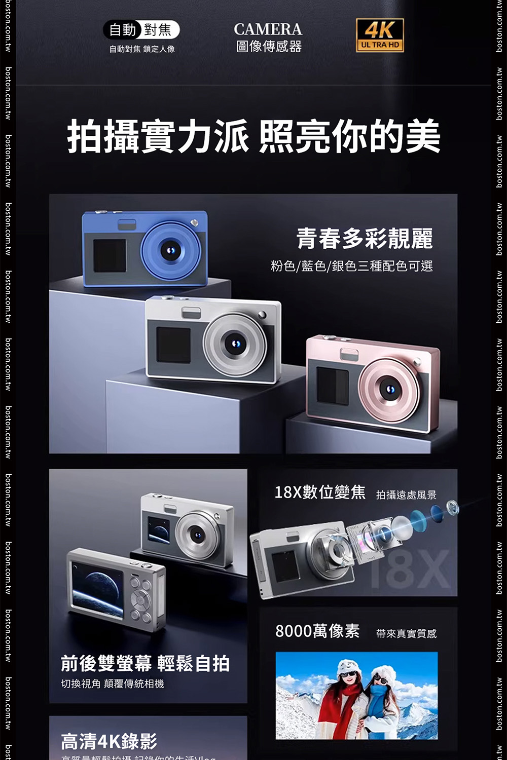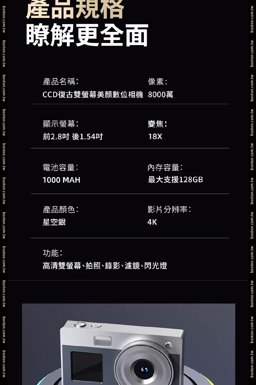 品名:波士頓相機CCD復古雙螢幕美顏數位相機